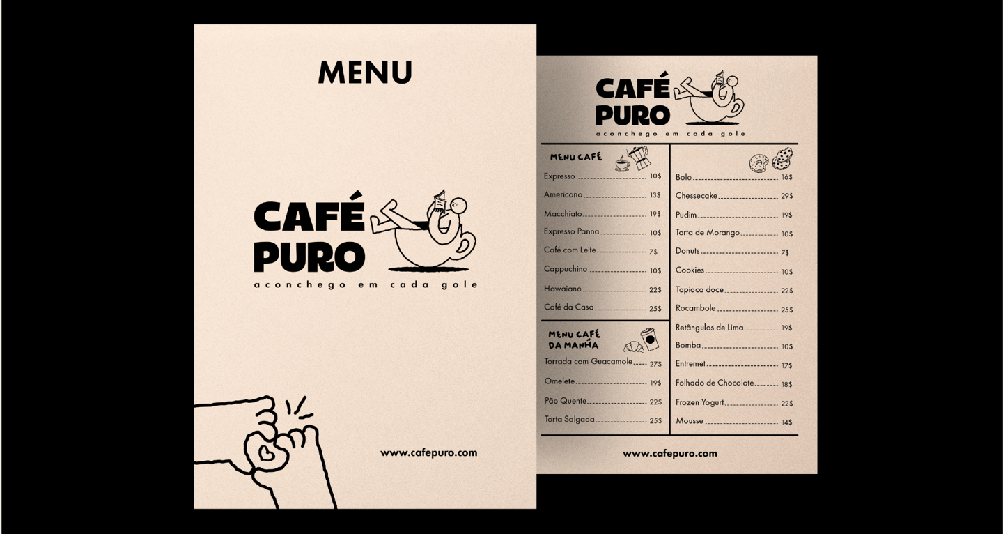 O desafio estratégico do Café Puro surge da necessidade de criar uma identidade visual que transcenda o papel tradicional de uma cafeteria, estabelecendo um espaço que une harmoniosamente três elementos fundamentais: a qualidade do café, a expressão artística e o senso de comunidade.